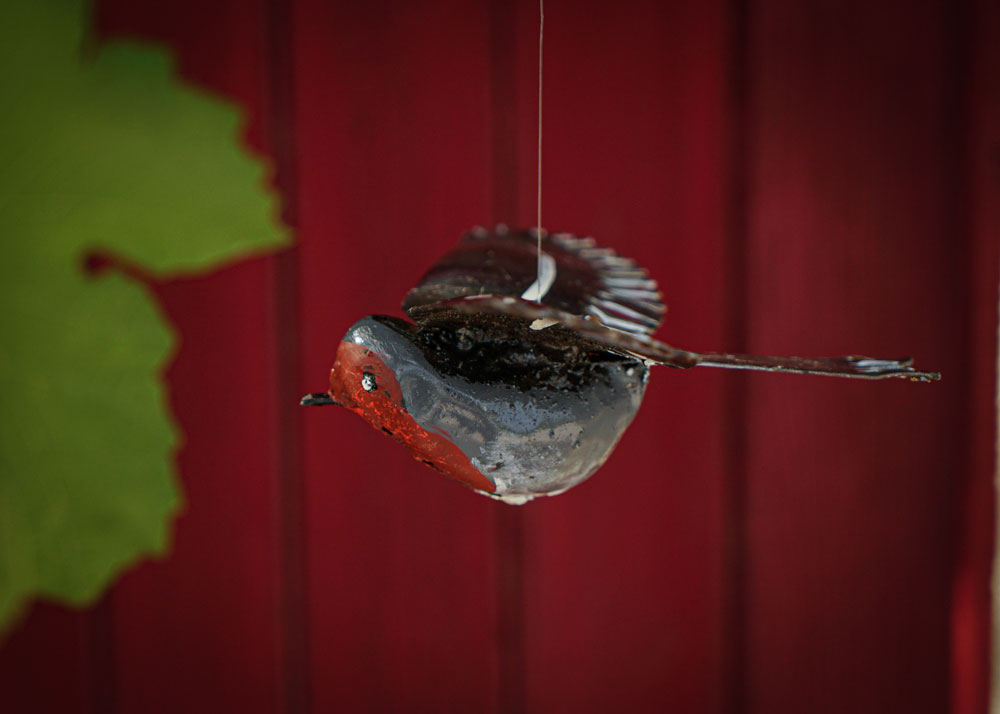 Rouge-gorge en vol à suspendre grâce a son fil et crochet. Il donnera de la vie, du mouvement et de la couleur a vos jardin, terrasse, pergola ou a votre intérieur!