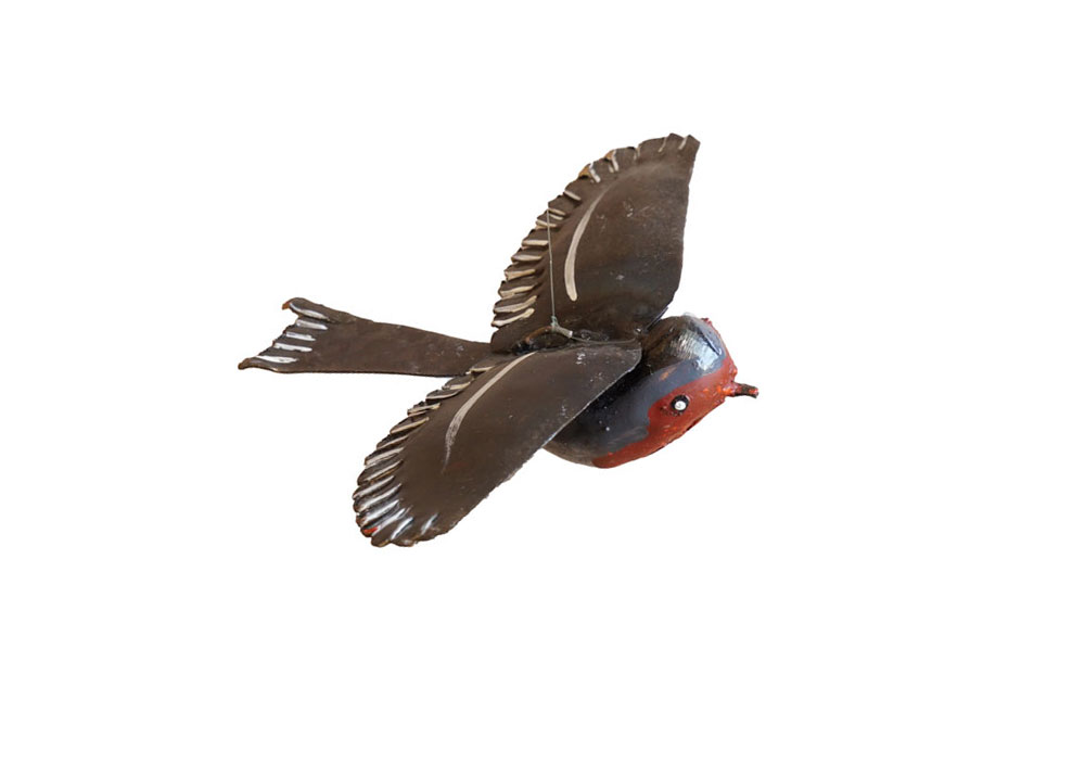 Rouge-gorge en métal recyclé.